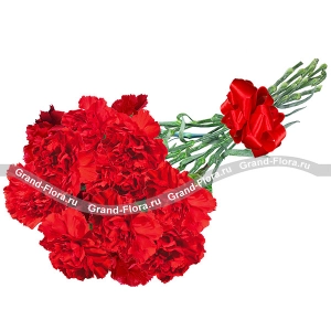 Триколор - композиция на оазисе из гвоздик и хризантем
