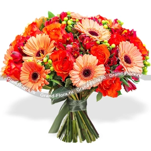 Осенний ветер - букет из оранжевых роз и гербер