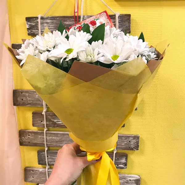Кто ищет ромашки, то это отличная альтернатива. Букет просто потрясающий. Спасибо за вашу работу.